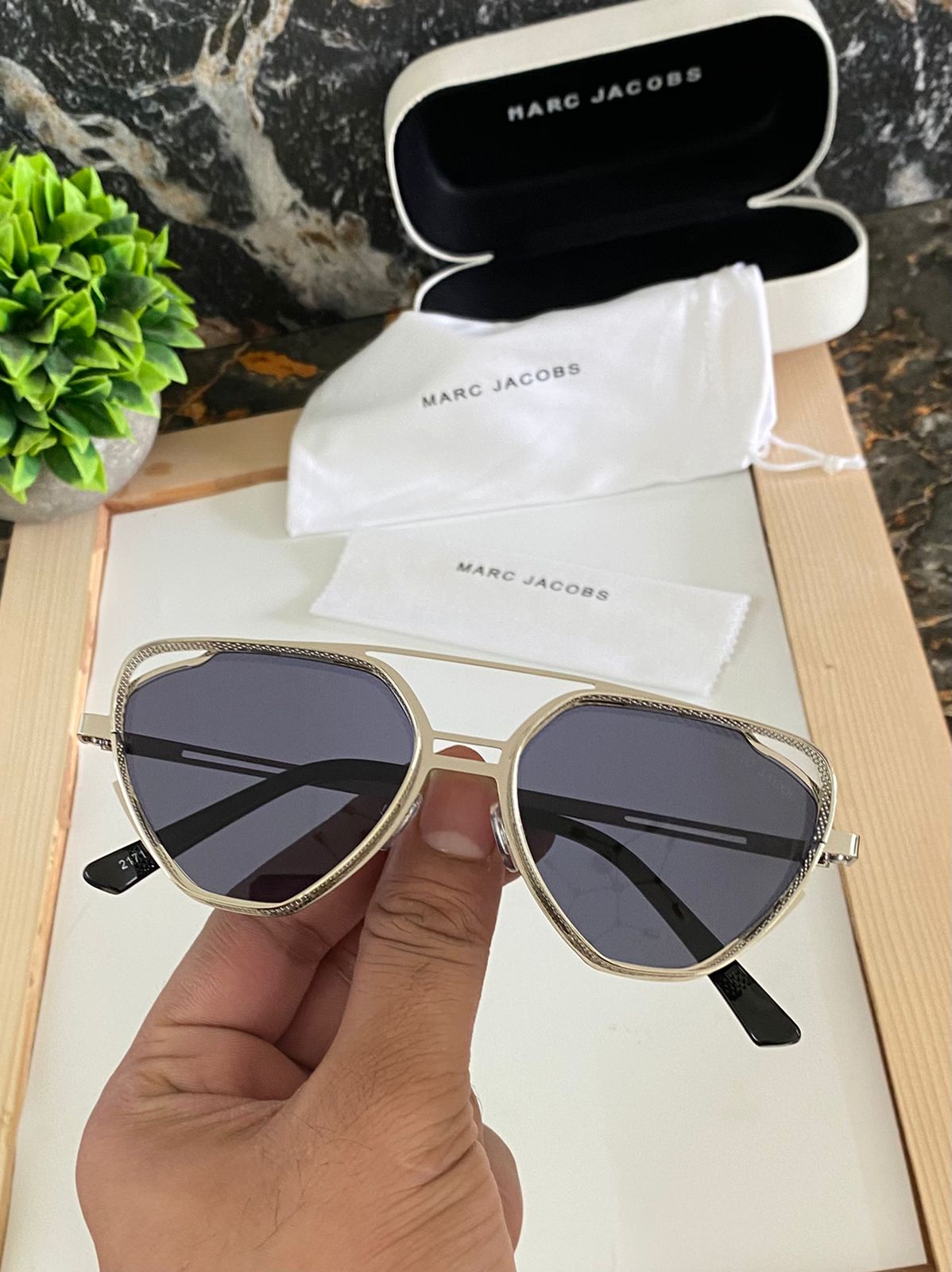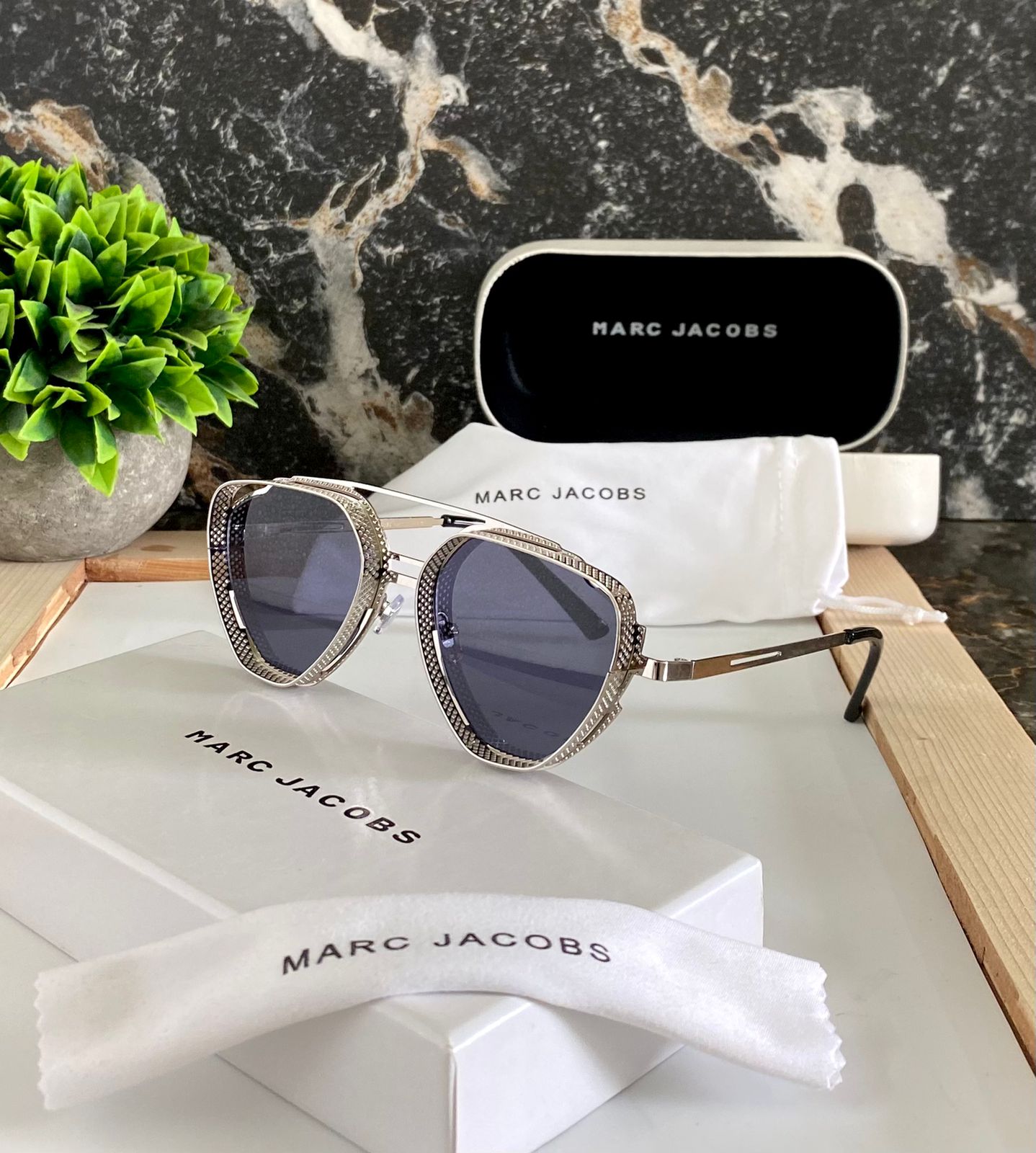 Marc Jacobs Unique Style Hollow Classic Vintage Square Metal Frame Designer Retro Brand Outdoor Driving Sunglasses For Men And Women High Quality Sunglass For Men’s And Women’s